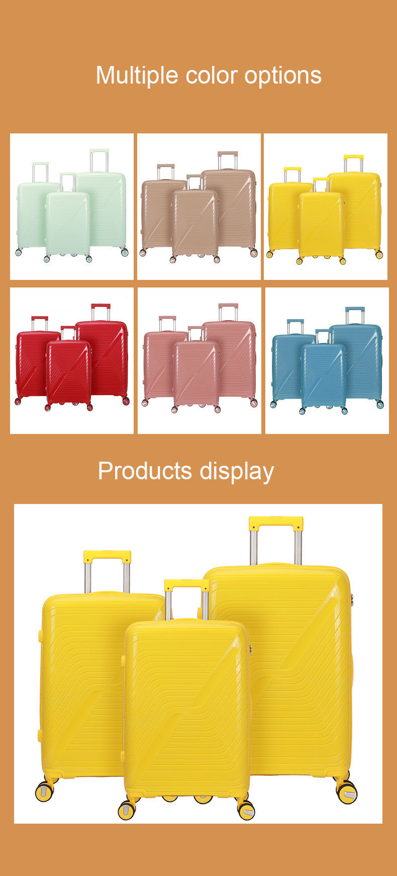 Berkualiti tinggi PP travel luggage 3-piece set 20 "24" 28 "set borong bagasi lelaki